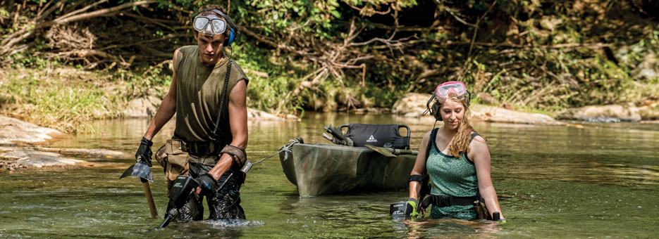 Поиски под водой интересуют пока не многих поисков, и зря, ведь подводных приборов продается в десятки раз меньше, чем грунтовых, и находок в воде действительно много. Как правило нет необходимости покупать оборудование для дайвинга и нырять, достаточно зайти с прибором по пояс и по грудь в воду, и внимательно исследовать эту прибрежную зону. При попадании в прохладную воду у людей очень часто теряются кольца, во время игр в воде рвутся и тонут цепочки и серьги, поэтому поиски в прибрежной зоне часто завершаются ценными находками.
